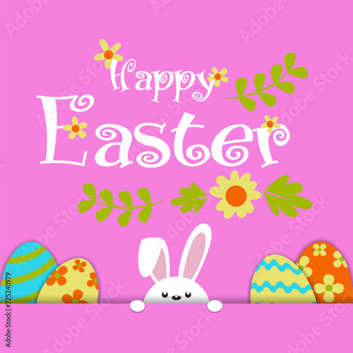 Paper cut style pink color with rabbit and easter egg in the grass. Vector illustation. For Easter day, invitation, greeting card, posters and wallpaper.