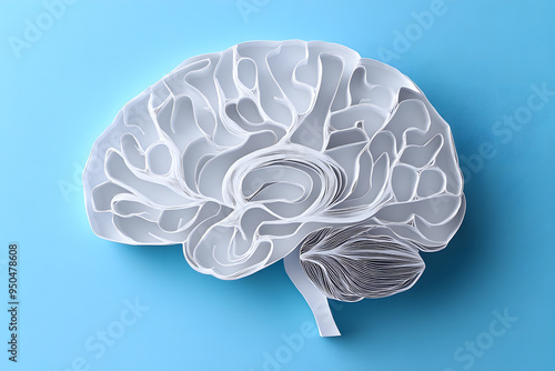 Paper cutout in the shape of a human brain isolated on background medical concepts
