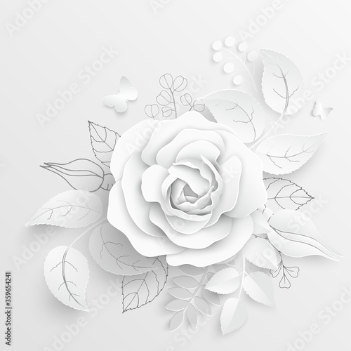 Paper flower. White roses cut from paper. Vector illustration.