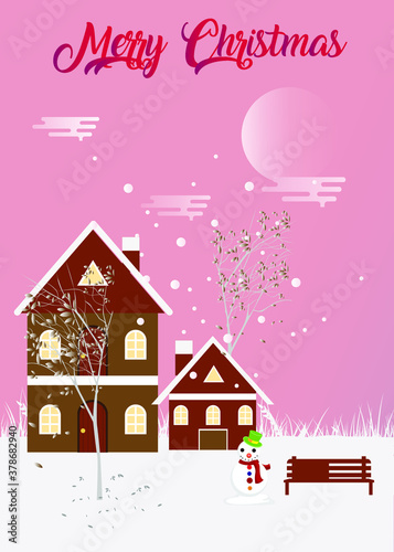 paper illustration with building background Merry christmas and happy new year greeting building in winter