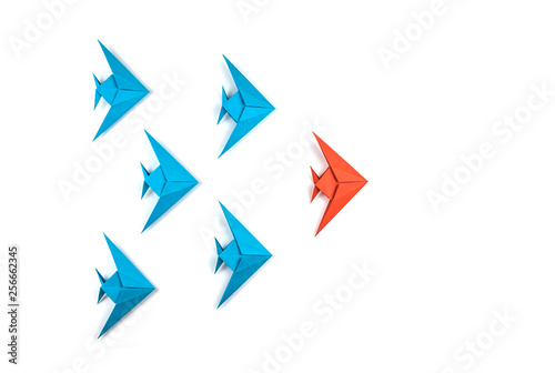 Paper origami fishes isolated on white background.