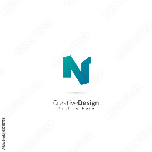 Paper Vector Letter N Logo with fold effect letters. Design Vector Illustration Logo template