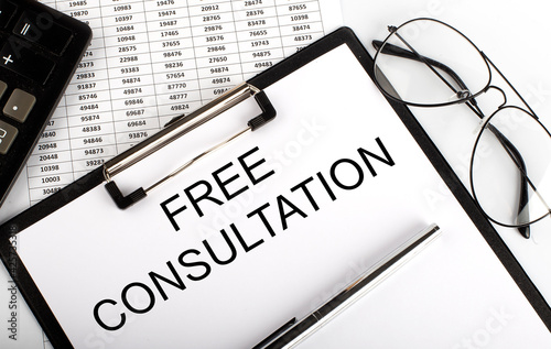 Paper with text FREE CONSULTATION on the table on chart