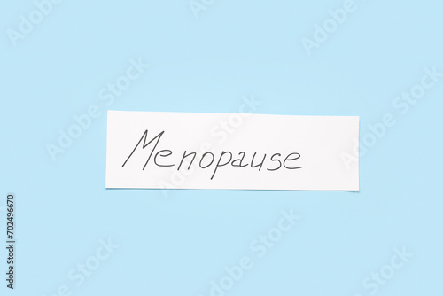 Paper with word MENOPAUSE on blue background