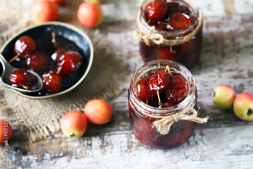 Paradise apple jam in a jar and in a bowl.