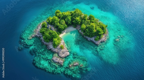 Paradise Found: Aerial View of Stunning Tropical Island in Crystal-Clear Turquoise Waters