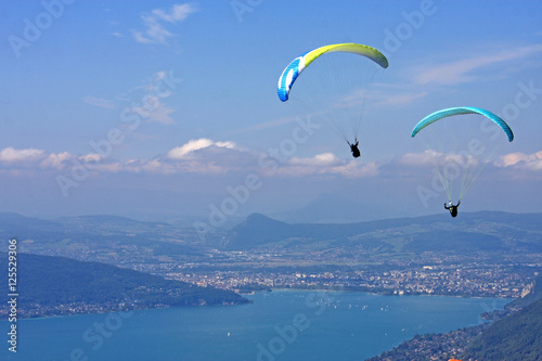 Paragliders above Lake Annecy