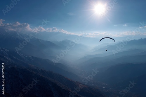 Paragliding Serenity: A Solo Flight Over Misty Mountains