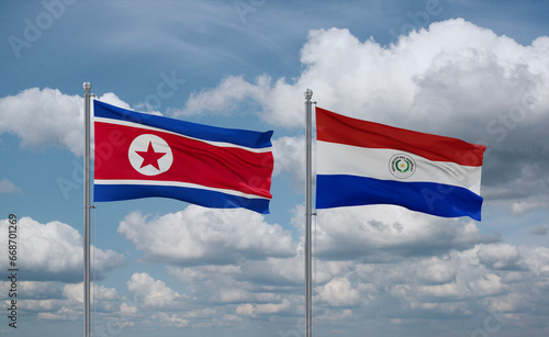 Paraguay and North Korea flags, country relationship concept