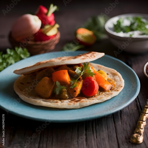 Paratha with vegetable curry, beautiful plating.