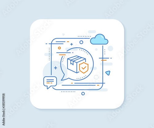 Parcel insurance line icon. Abstract square vector button. Risk coverage sign. Package delivery protection symbol. Parcel insurance line icon. Speech bubble concept. Vector