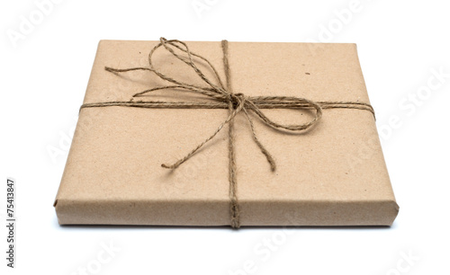 parcel wrapped with brown kraft paper isolated on white backgrou