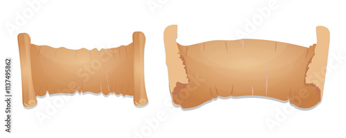Parchment papers scroll ribbon, old vintage banner vector illustration design background
