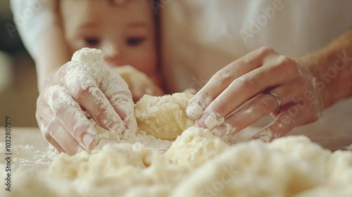 Parent and Child Baking Together with Flour on Their Hands