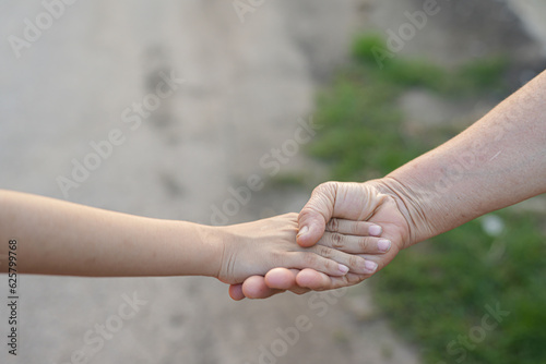 parent holds the hand of a small child