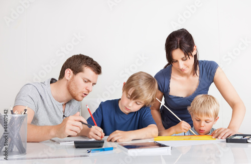 Parents helping their children with homework