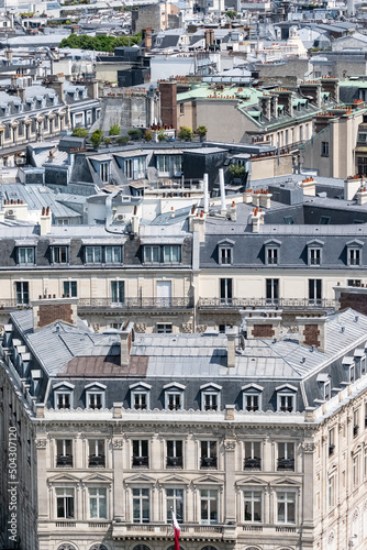 Paris, beautiful Haussmann facades and roofs in a luxury area of the capital, view from the triumph arch