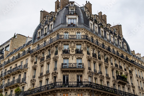 Paris Haussmann apartment building with decorative balconies