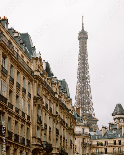 Parisian Architecture with Eiffel Tower Backdrop