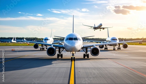 Parked commercial jet aircraft on the tarmac at an airport, ready for air travel and flight
