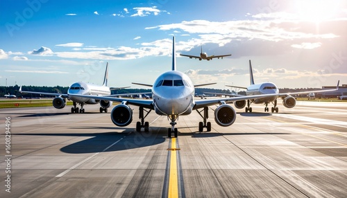 Parked commercial jet aircraft on the tarmac at an airport, ready for air travel and flight