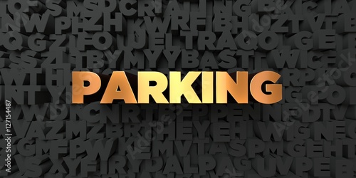 Parking - Gold text on black background - 3D rendered royalty free stock picture. This image can be used for an online website banner ad or a print postcard.