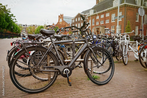 Parking place with bicycles for rent on street