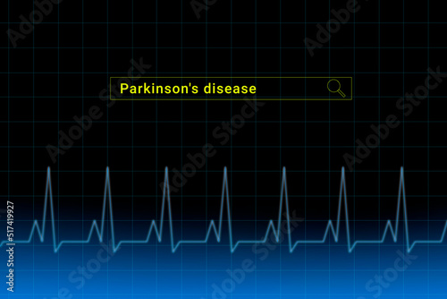 Parkinson's disease.Parkinson's disease inscription in search bar. Illustration with titled Parkinson's disease . Heartbeat line as a symbol of human disease.