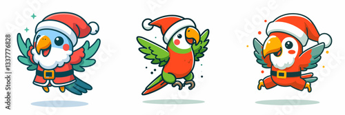 Parrot wear Santa Claus costumes jumping with joy a simple vector graphic drawing depicts festive avian holiday cheer