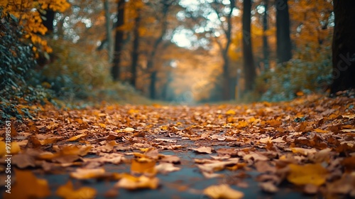 part of autumnnatural landscape with a view of spacewavy autumn park path : Generative AI