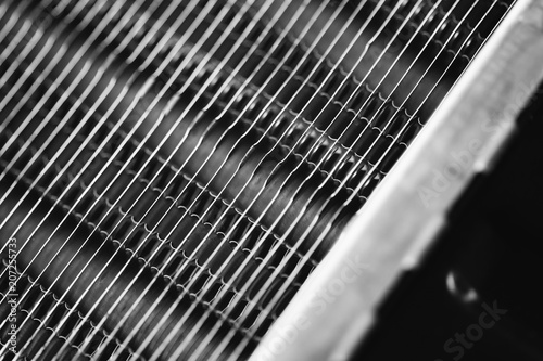 Part of the radiator for cooling the engine close-up. Steel texture.