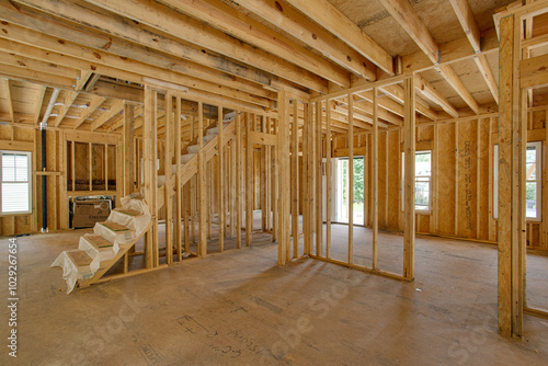 Partially Constructed Building With Wooden Framing Seen