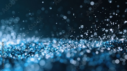Particles suspended in a dark blue expanse, glowing softly, creating a mesmerizing visual of depth and movement, evoking a sense of tranquility and wonder.
