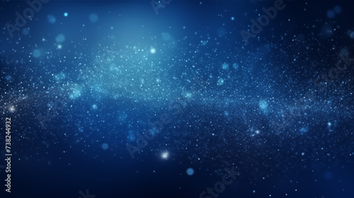 Particules scintillantes et brillantes bleues volant sur fond sombre. Lumière et paillettes flou. Bleu. Fond pour bannière, conception et création graphique.