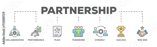 Partnership banner web icon illustration concept with icon of collaboration, performance, plan, teamwork, synergy, success and win-win solution