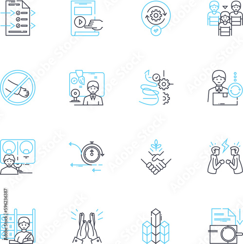 Partnership linear icons set. Alliance, Collaboration, Association, Mutualism, Cooperation, Joint-venture, Synergy line vector and concept signs. Collaboration,Compact,Fellowship outline illustrations
