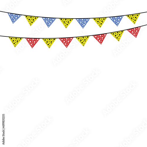 Party bunting flags with polka dot pattern, Vector illustration, Carnival colored garlands and bunting, Carnival colored garlands and bunting, colorful pennants