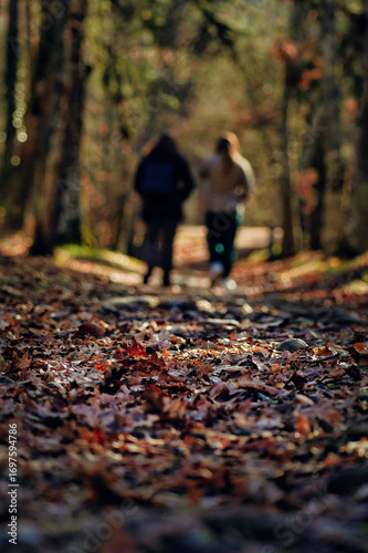 Paseo otoñal entres las hojas caída