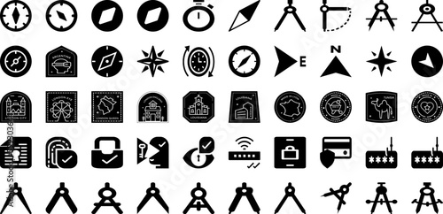 Pass Icon Set Isolated Silhouette Solid Icons With Outline, Pass, Icon, Symbol, Sign, Line, Vector Infographic Simple Vector Illustration