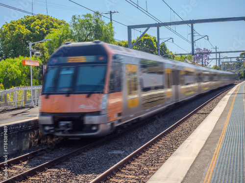 Passenger Train going through Summer Hill train station a suburban Sydney train Station NSW Australia