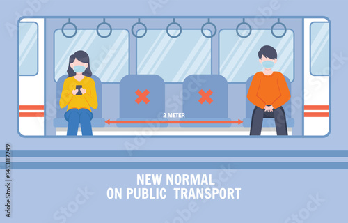 Passengers Wearing Masks and Social Distancing on Train to Follow Health Protocols