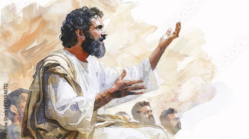 Passionate Preaching: Apostle Matthias Filled with Holy Spirit - Biblical Illustration with Beige Background and Copyspace