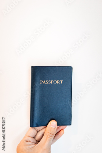 Passport close-up held in hand. generic passport with blank background