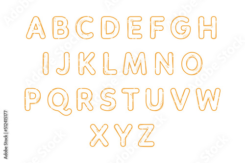 Pasta cartoon alphabet. Font from letters in the form of macaroni. Lettering from pasta soup. Isolated objects for books, backgrounds, wallpapers, cards, textile composition. Vector cartoon style.