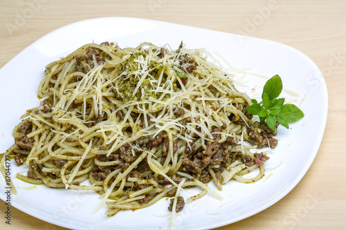 Pasta with beef and pesto