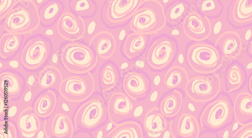 Pastel abstract seamless pattern with unique swirl organic shapes on a pink background. Vector hand drawn irregular shape circular. Contemporary background ornament for print