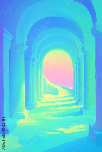 Pastel Archway Abstract Painterly Columns and Serene Horizon