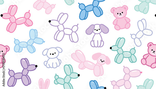 Pastel Balloon Animal Pattern: Cute Puppy & Bear Design for Fabric, Paper, & More