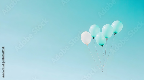 Pastel balloons floating in blue sky festive background