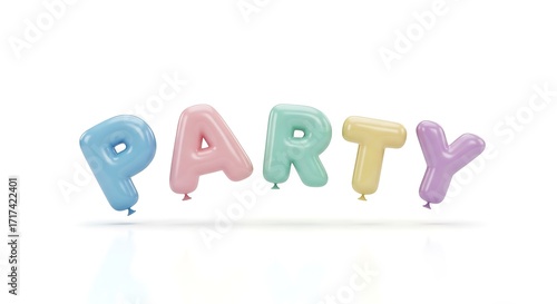 Pastel Balloons Spelling Party Celebration on White Background, Joyful Event for any Occasion
